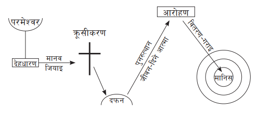 तैपनि, मनिसको पतनले परमेश्वरलाई उहाँको शुरूवातको योजना पूरा गर्नबाट निरुत्साहित गरेन । उहाँको योजना पूरा गर्नको लागि, परमेश्वर पहिला येशू खीष्ट कहलाइने मानिस बन्नुभयो (यूहन्ना १:१,१४) । त्यसपछि मानिसलाई छुटकारा गर्न ख्रीष्ट क्रूसमा मर्नुभयो (एफिसी १:७), यसरी उसको पापलाई उठाइलैजानुभयो (यूहन्ना १:२९) र उसलाई परमेश्वरतिर फर्काइल्याउनुभयो (एफिसी २:१३) । अन्त्यमा, पुनरुत्थानमा, उहाँ जीवन- दिने आत्मा बन्नुभयो (१ कोरिन्थी १५:४५) ताकि उहाँले उहाँको खोज्न नसकिने प्रचुर जीवन मानिसको आत्माभित्र वितरण गर्न सकून् (यूहन्ना २०:२२, ३: ६)।