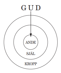 För att uppfylla sin plan skapade Gud människan som ett kärl (Rom 9:21–24). Detta kärl består av tre delar: kropp, själ och ande (1 Tess 5:23). Kroppen tar kontakt med och tar emot de ting som finns i den fysiska världen. Själen, den mentala förmågan, kontaktar och tar emot det som finns i den psykologiska sfären. Och den mänskliga anden, människans allra innersta del, skapades för att kontakta och ta emot Gud själv (Joh 4:24). Människan skapades inte bara för att ha mat i magen eller för att ha kunskap i sitt sinne utan för att innehålla Gud i sin ande (Ef 5:18).