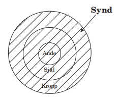 Men innan människan kunde ta emot Gud som liv i sin ande, kom synden in i henne (Rom 5:12). Synden dödade hennes ande (Ef 2:1), gjorde henne till en Guds fiende i sinnet (Kol 1:21) och omvandlade hennes kropp till syndigt kött (1 Mos 6:3; Rom 6:12). Synden skadade alltså människans alla tre delar och gjorde henne främmande för Gud. I detta tillstånd kunde människan inte ta emot Gud.